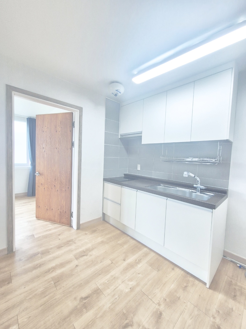 ◑ 주방 싱크대는 일자로 된구조입니다 가스렌지가 아닌 하이라이터 일반 냄비 사용가능