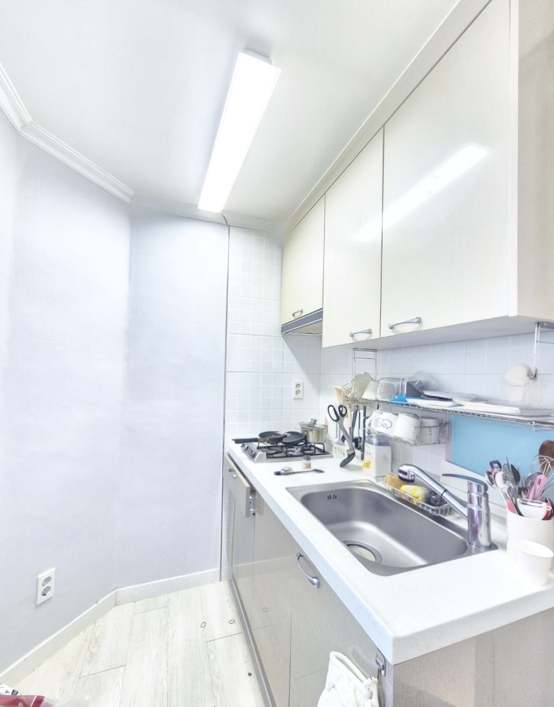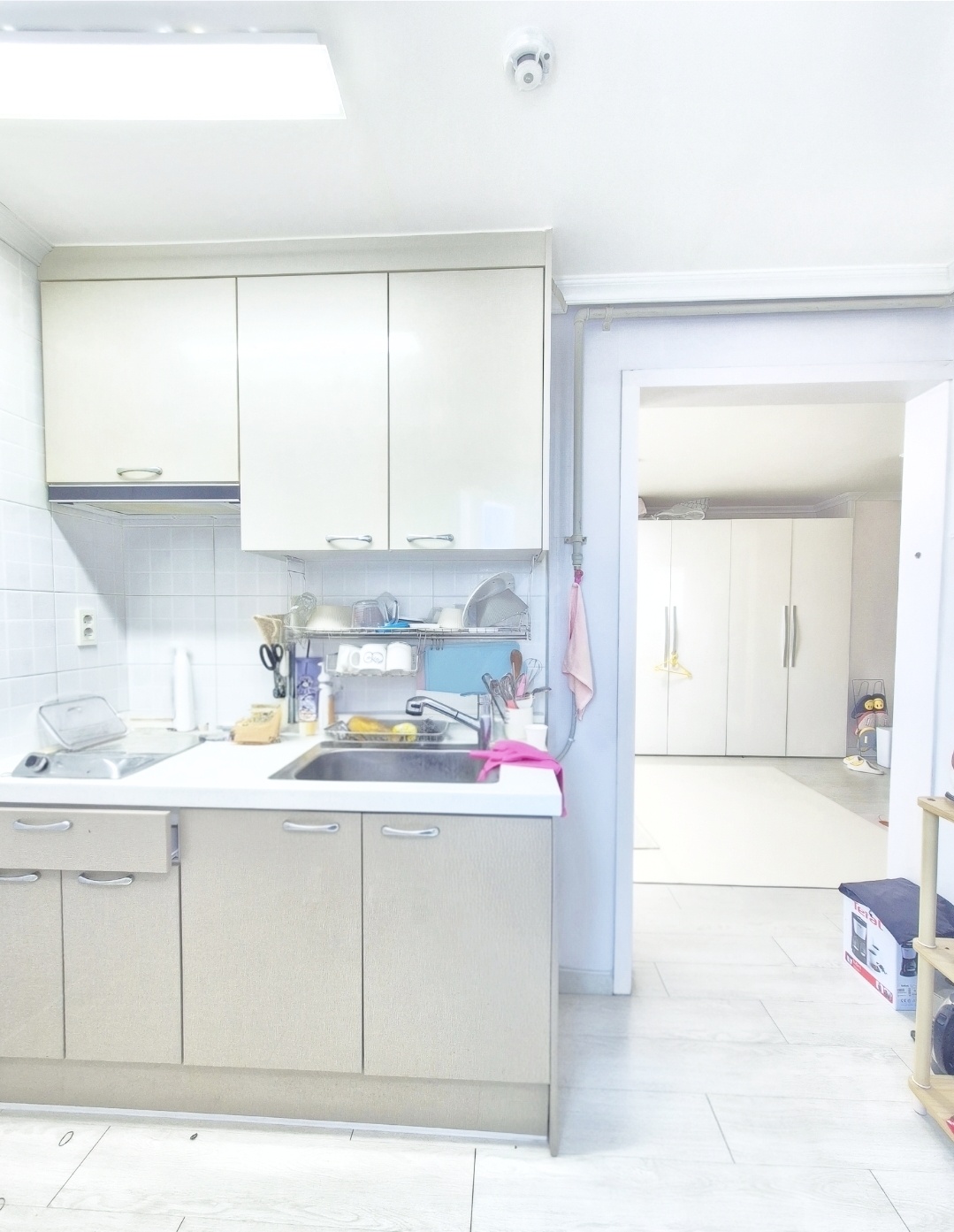 v 이집에 구조는 방1개 거실1개 가벽으로 분리된주방
