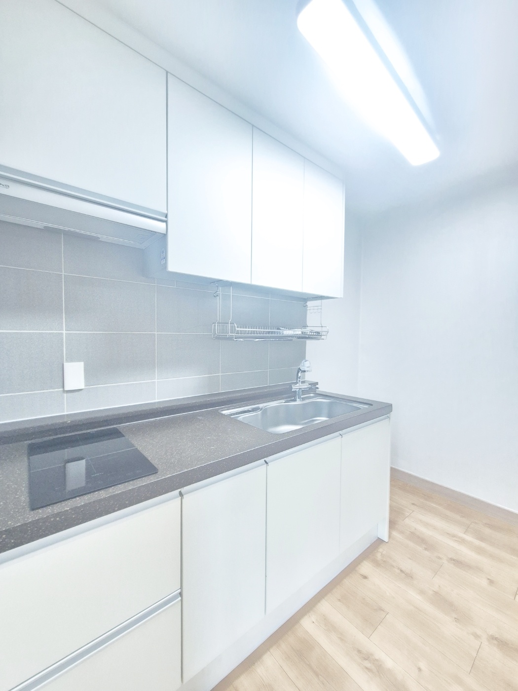 ◑ 주방 싱크대는 일자로 된구조입니다 가스렌지가 아닌 하이라이터 일반 냄비 사용가능